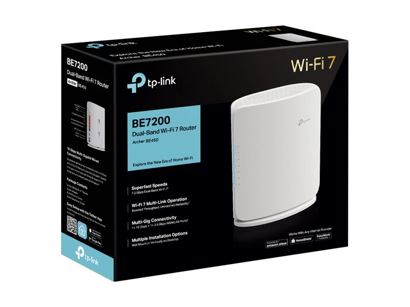 TP-Link Archer BE450 V1 - Wireless Router 3-Port-Switch - 2.5GbE, 10GbE, Wi-Fi 7 - WAN-Ports: 2 Dual-Band - wandmontierbar