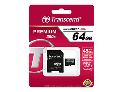 Transcend Premium - Flash-Speicherkarte (microSDHC/SD-Adapter inbegriffen) - 64 GB - UHS Class 1 / Class10 - 300x - microSDXC UHS-I