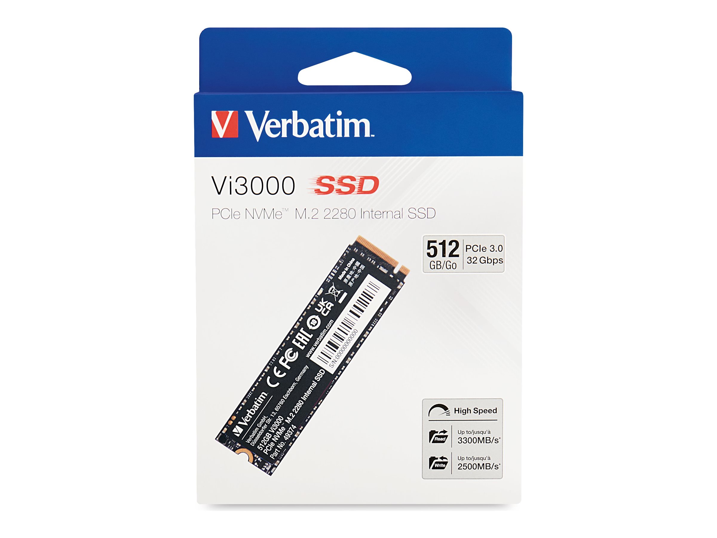 Verbatim Vi3000. SSD Speicherkapazität: 512 GB, SSD-Formfaktor: M.2, Lesegeschwindigkeit: 3100 MB/s, Schreibgeschwindigkeit: 2100 MB/s, Komponente für: PC/Laptop
