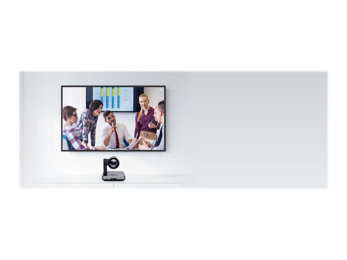 Gerätetyp: Konferenzkamera,Audiounterstützung: Ja,Kameramontagetyp: Deckenmontage, Oberflächenmontage, Stativbefestigung, Wandmontage,Anschlusstechnik: Kabelgebunden,Typ: Farbe - Pan / Tilt / Zoom,Max. Digitalvideoauflösung: 3840 x 2160,Video-Modi: 4K/30p, 1080/30p, 1080/60p, 720/30p, 720/60p,Digitales Zoom: 3,Belichtungsbereich: 1/60 Sek - 1/10000 Sek,Bildrate (max.): 60 Bilder pro Sekunde,Leistungsmerkmale: Manueller Weißabgleich, Handbelichtung, Automatische Belichtungssteuerung, automatischer Weißabgleich, automatische Umrahmung, USB Video Communication Protocol (UVC 1.0),Typ: Motorbetriebener Zoom,Optisches Zoom: 12 x,Brennweite: 3.9 mm - 46.8 mm,Objektiv-Irisblende: F/1.6-2.8,Fokuseinstellung: Automatisch,Horizontales Blickfeld (Grad): 73,Vertikales Blickfeld (Grad): 45,Bereich (Grad): -100 bis +100,Bereich (Grad): -90 bis +45,Computerschnittstelle: USB 2.0,Anschlüsse: USB 2.0 - USB Typ B, 4-polig ¦ Audioausgang ¦ Mikrofon - RJ-45,Kennzeichnung: Plug and Play,Erforderliche Netzspannung: DC 48 V - 0.7 A,Stromversorgungsgerät: Netzteil - extern Wechselstrom 120/230 V,Erforderliches Betriebssystem: Apple MacOS X 10.10 oder höher, Microsoft Windows 7, Windows 10